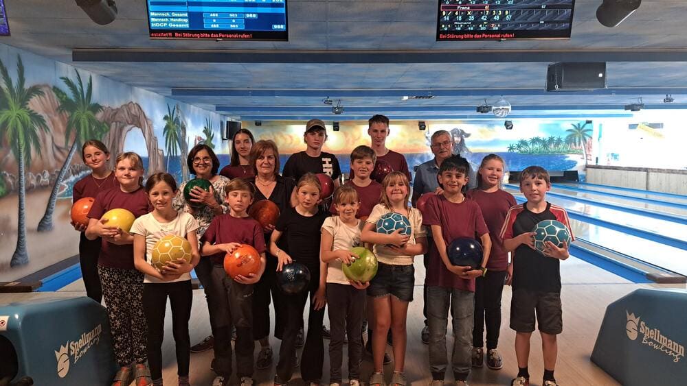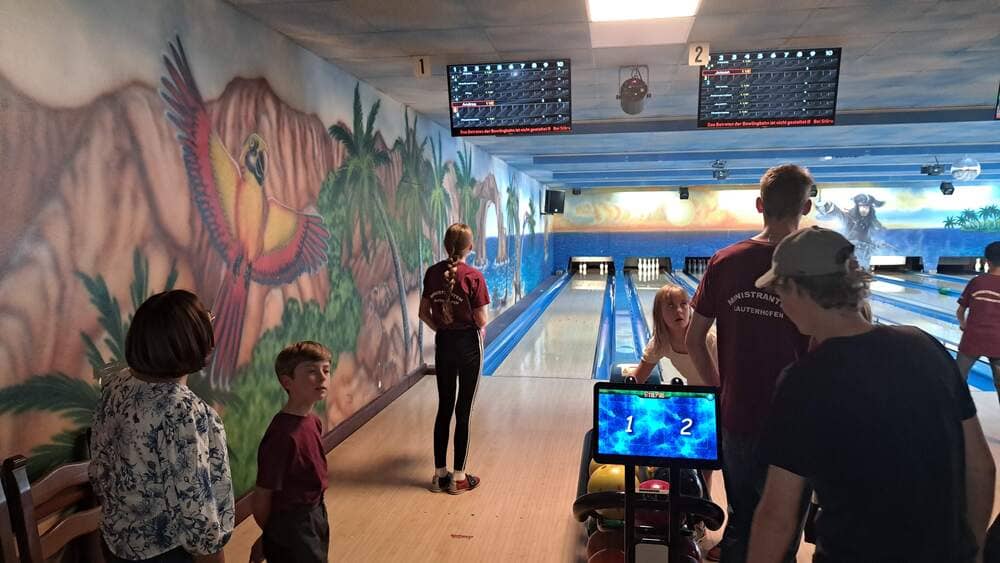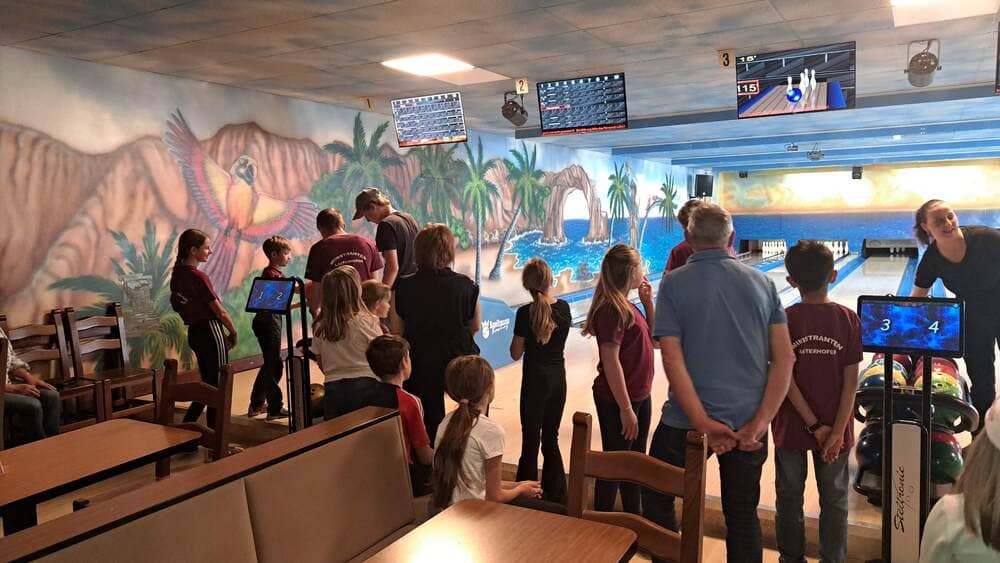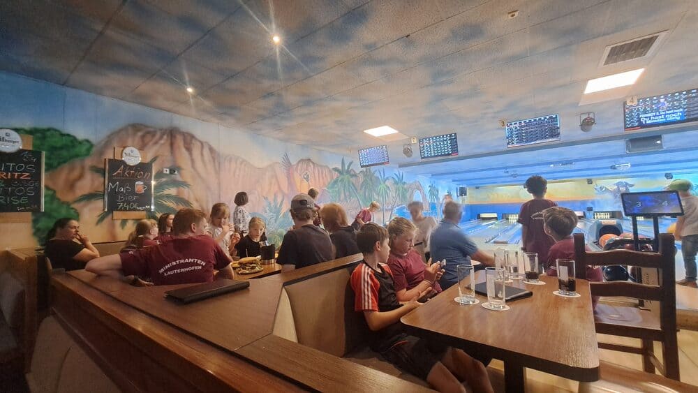 Am Freitag, 30. Mai, stand wieder ein Bowling-Ausflug der Ministranten auf dem Programm. 14 Ministranten und drei Betreuer machten sich aus Lauterhofen auf den Weg nach Velburg ins Bowling-Center. Insgesamt wurden in zwei Stunden auf drei Bahnen 416 Runden gespielt und dabei 2754 Punkte erzielt. Highlight waren 10 Strike und 38 Spare. Zum Abschluss gab es Essen und Getränke.