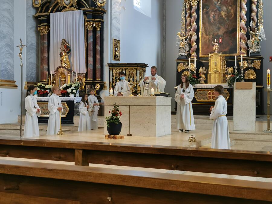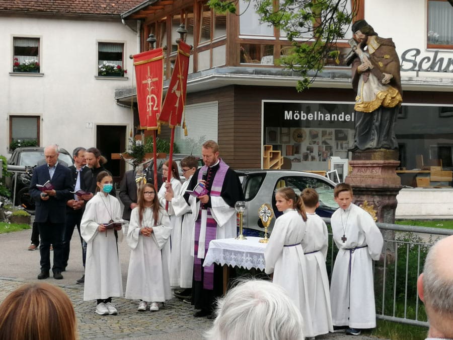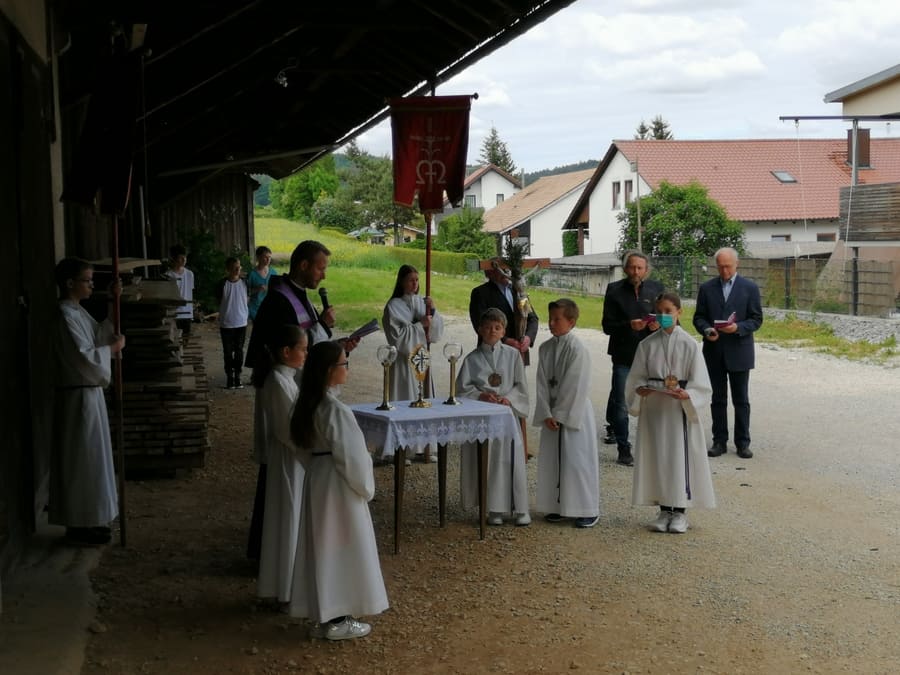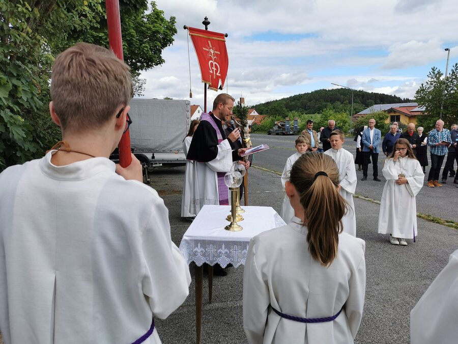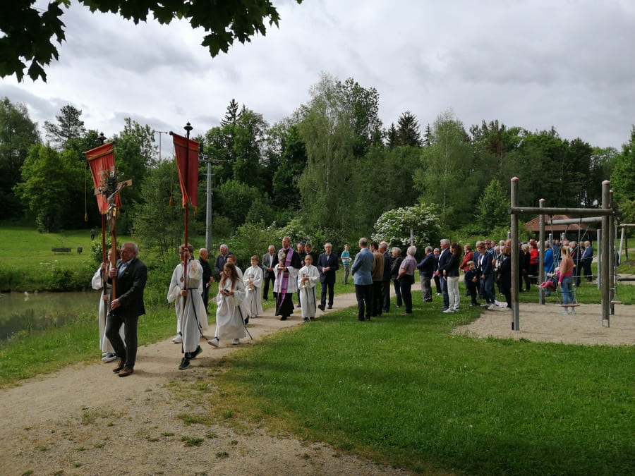 Bei herrlichem Wetter leitete In Lauterhofen Domvikar Christoph Wittmann die Prozession, in Trautmannshofen und in Gebertshofen erteilte Pfarrer Gerhard Ehrl den Segen mit dem Kreuzpartikel und in Traunfeld und Deinschwang erbat Kaplan P. Sunil Ekka den Segen für die Fluren.