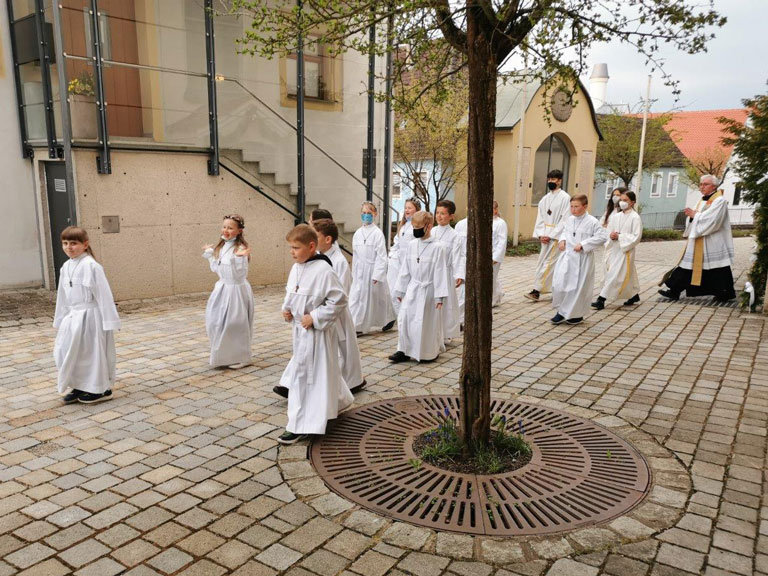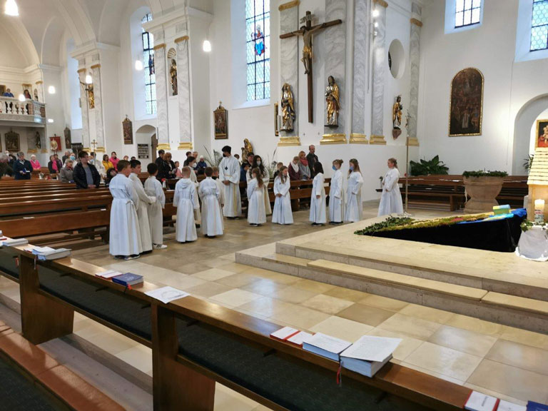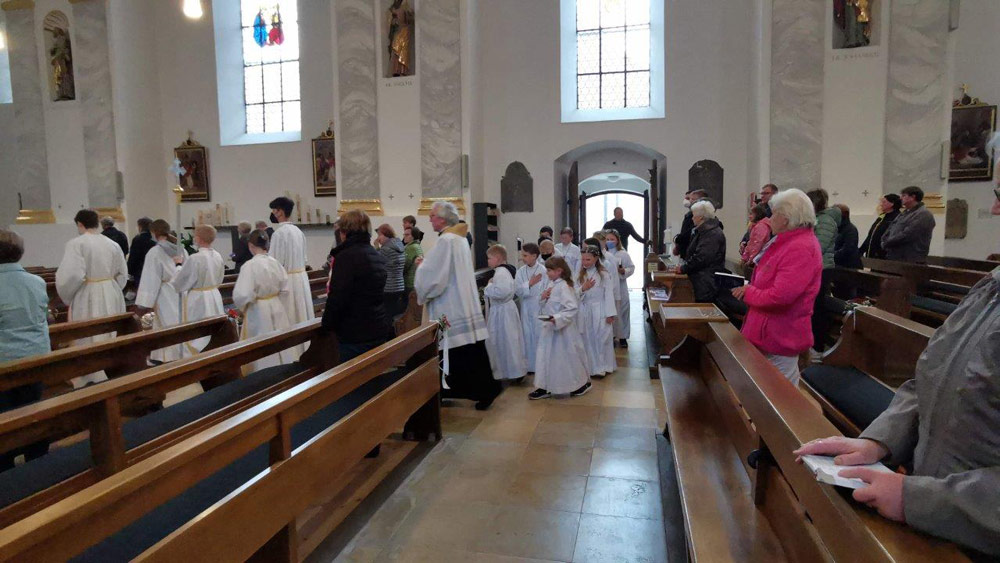 Traditionell gestalten Kommunionkinder und Kirchenchor die Erste und Letzte Maiandacht in Lauterhofen mit. Der erste Tag im Monat Mai wird weltweit als "Tag der Arbeit" begangen.