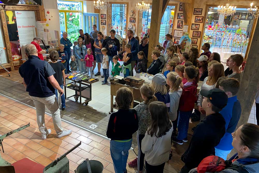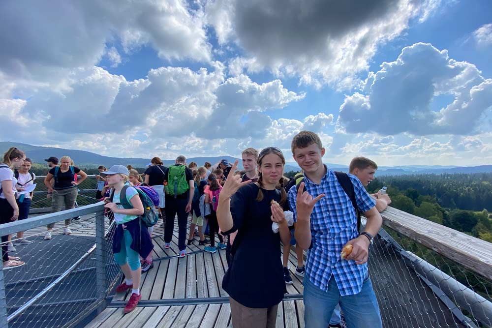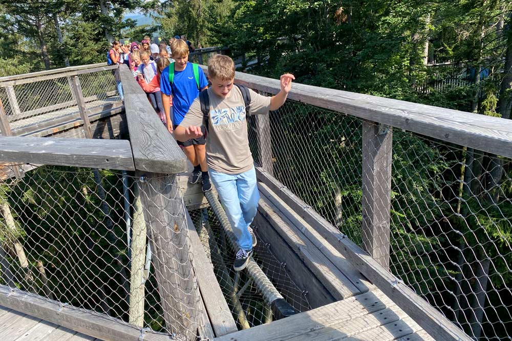 Bei bestem Wetter und großartiger Stimmung verbrachten 31 Ministranten mit fünf Leiterinnen aus dem Pfarrverband Lauterhofen eine fünftägige Freizeit im KJR-Selbstversorgerhaus in Abtschlag im Bayerischen Wald. Mit Unterstützung von drei Müttern und Diakon Josef Schlecht aus Bodenmais wurde ein abwechslungs-reiches Programm durchgeführt. Neben einer Fahrt mit der Arberbergbahn, einer vorherigen Technikführung und einem anschließenden Abstieg zum Naturschutzgebiet Kleiner Arbersee konnten die Minis bei JOSKA in Bodenmais auch selber farbige Glaskugeln blasen. Mit dem Sessellift fuhr man zum historischen Silbergbergwerk, wo man in die Geheimnisse des Bergbaus vor 200 Jahren eingeführt wurde. Einen ganzen Tag verbrachten die Minis aus Lauterhofen, Trautmannshofen, Traunfeld und Gebertshofen auch im Naturpark Bayerischer Wald mit der Besteigung des Baumwipfelpfades.