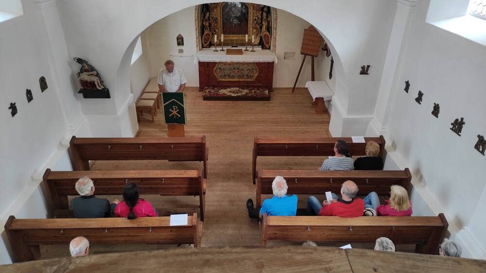 Nach einem gemeinsamen Gebet in der Simultankirche Fürnried St. Willibald machte sich die ökumenische Radgruppe auf den Weg über Troßalter und Eckeltshof nach Poppberg. Mesnerin Erika Hirschinger erläuterte die Entstehungsgeschichte der dortigen Martin-Luther-Kirche. Nach einem Gebet steuerten die 20 Radfahrer das Hauptziel Lauterhofen an. Begrüßt wurden sie hier von mehreren Pfarrgemeinderäten und Pfarrer Gerhard Ehrl. Nach einer historischen Kirchenführung, bei der Pfarrer Gerhard Ehrl auf die große Bedeutung der Pfalz Lauterhofen zur Zeit der Karolinger im 8. und 9. Jahrhundert einging, aber auch die Wirren der Glaubenskriege des 16. und 17. Jahrhunderts nicht verschwieg, feierte die Radgruppe eine Andacht in der nahegelegenen Mariahilfkapelle. Anschließend gab Josef Segerer noch ein Orgelkonzert in der Pfarrkirche St. Michael. Abgerundet wurde der Tag mit einer bayerischen Brotzeit im Pfarrhof, welche von Pfarrer Roland Klein und dem Pfarrgemeinderat Lauterhofen vorbereitet wurde. „Ich fahr so gern bei dieser Radtour mit, weil hier wirklich Körper, Geist und auch die Seele zur Ruhe kommen“, sagte eine Frau, die sich bereits für die nächste ökumenische Radtour in 2023 angemeldet hat.