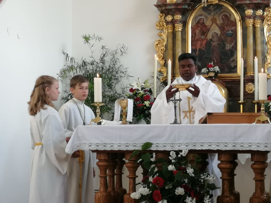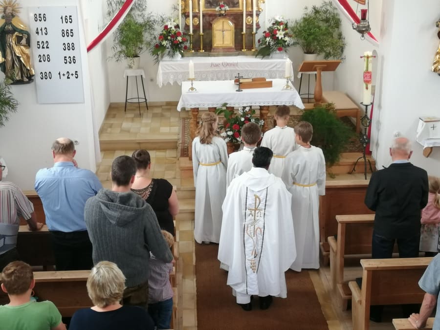 Am Pfingstmontag wurde traditionell in Nattershofen das Patrozinium MARIA KÖNIGIN begangen. Die 1956 geweihte Kirche war gut gefüllt, als Kaplan P. Sunil Ekka die Messe für die verstorbenen Erbauer und Wohltäter der Marienkirche feierte. Die Dorfbewohner, die früher zur Altgemeinde Engelsberg gehörten, schätzen ihre Kirche als Wahrzeichen und Herz ihres Dorfes.