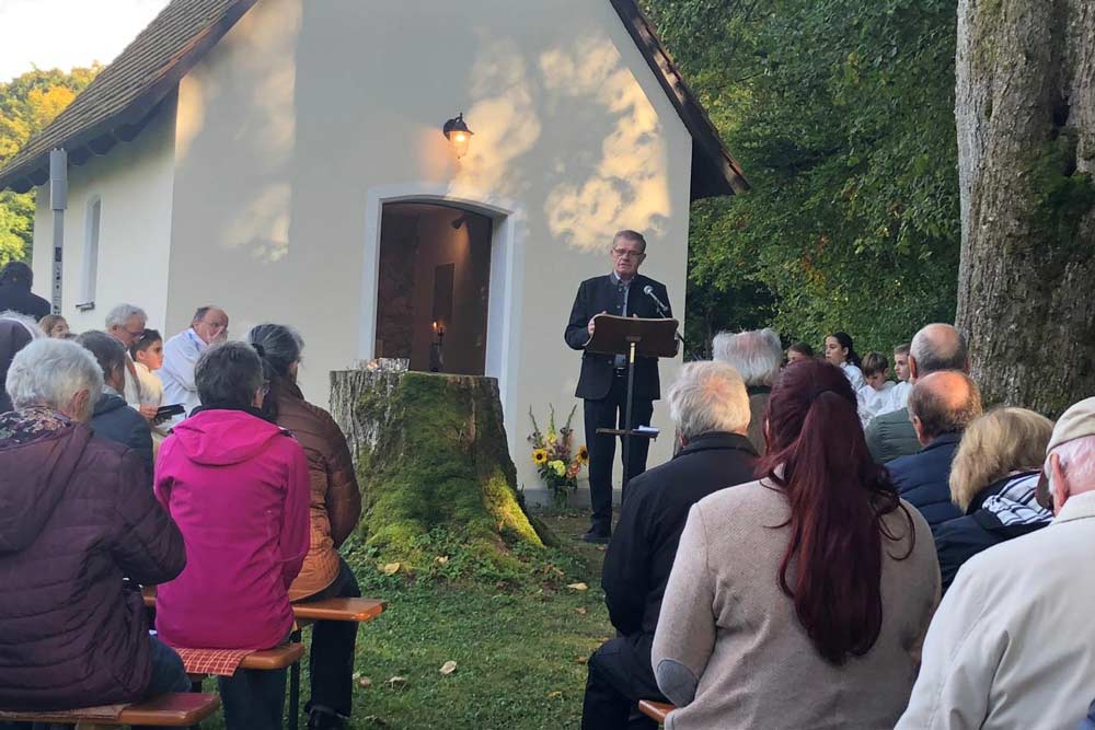 Am Sonntag, den 28.09.2025 feierte die Pfarrei Traunfeld das 130-jährige Jubiläum der Lourdes-Kapelle auf dem „Burgstühl“ nahe Traunfeld und zugleich die Einweihung des restaurierten Marterls von der „Toudn-Leitn“.
