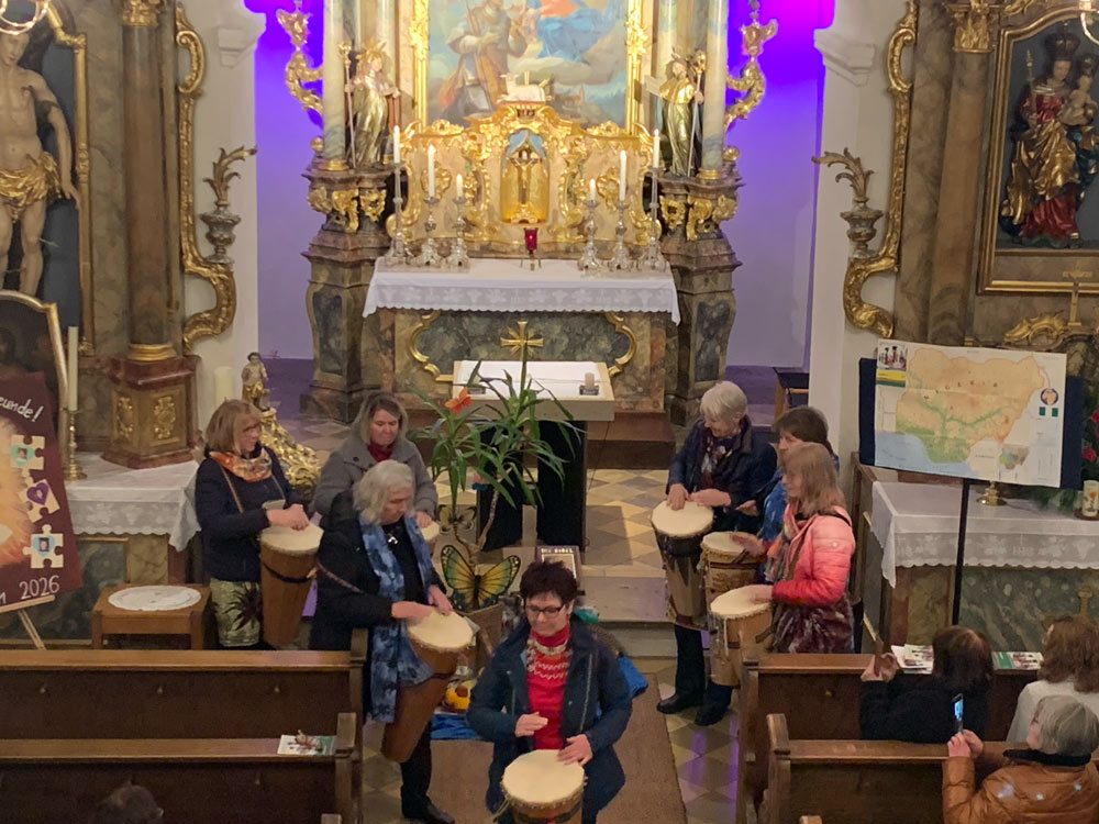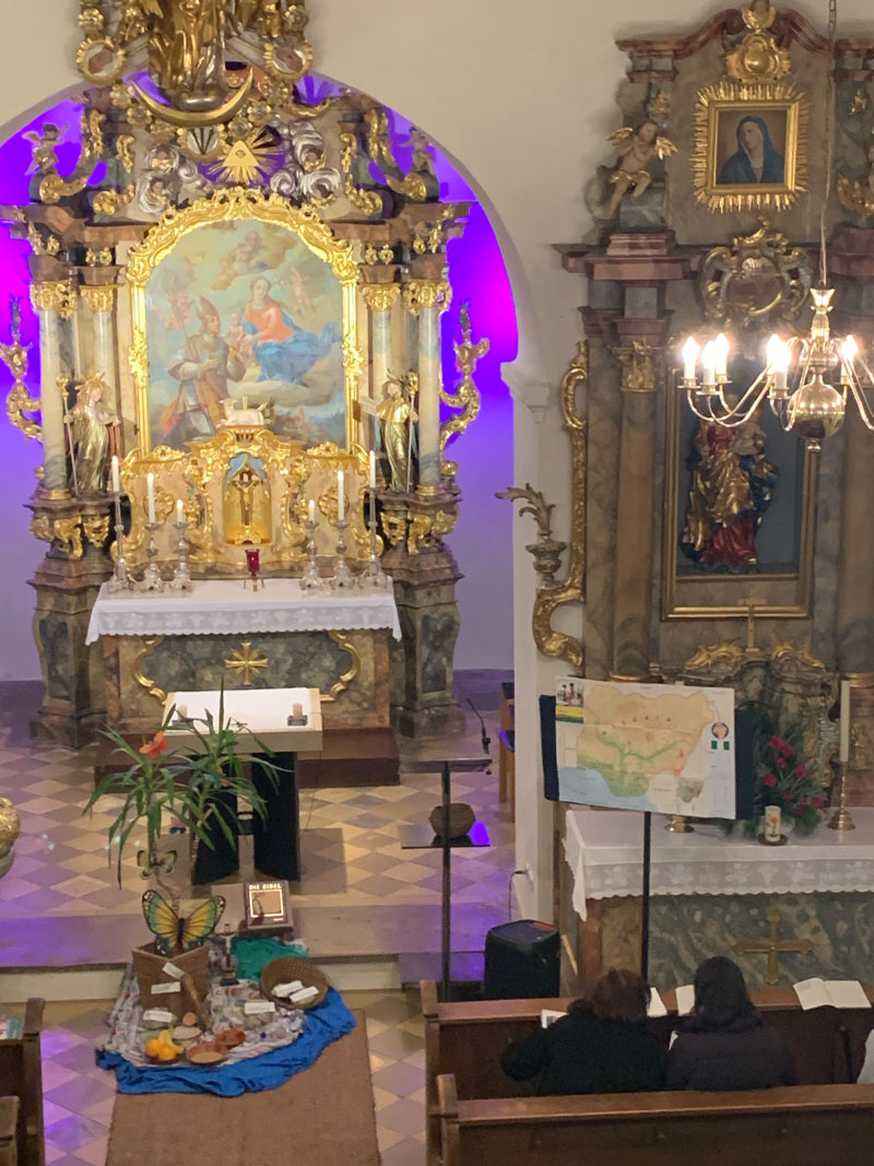 Am Freitag, den 6.3.2026 feierten in Sankt Willibald Traunfeld die Frauen aus den beiden Pfarreien Eismannsberg (evangelisch) und Traunfeld (katholisch) den ökumenischen Weltgebetstag der Frauen. In diesem Jahr gestalteten Frauen aus Nigeria die Gottesdienstvorlage, stellten die Probleme vor, denen Frauen in ihrem Land ausgesetzt sind und wählten das Motto: Kommt! Bringt eure Last.